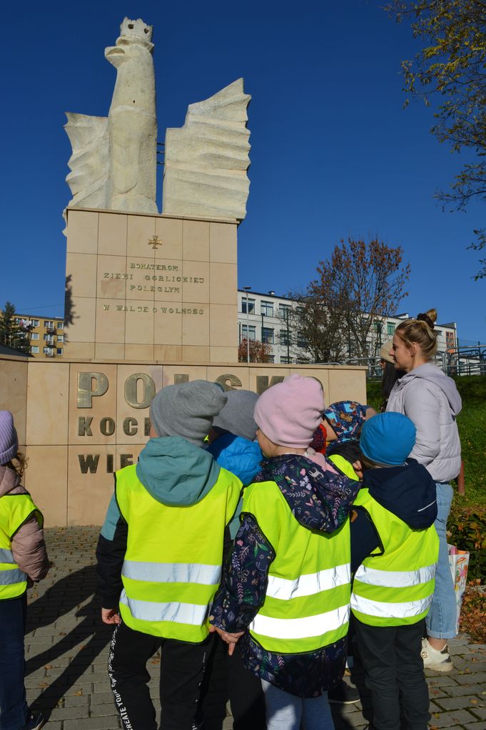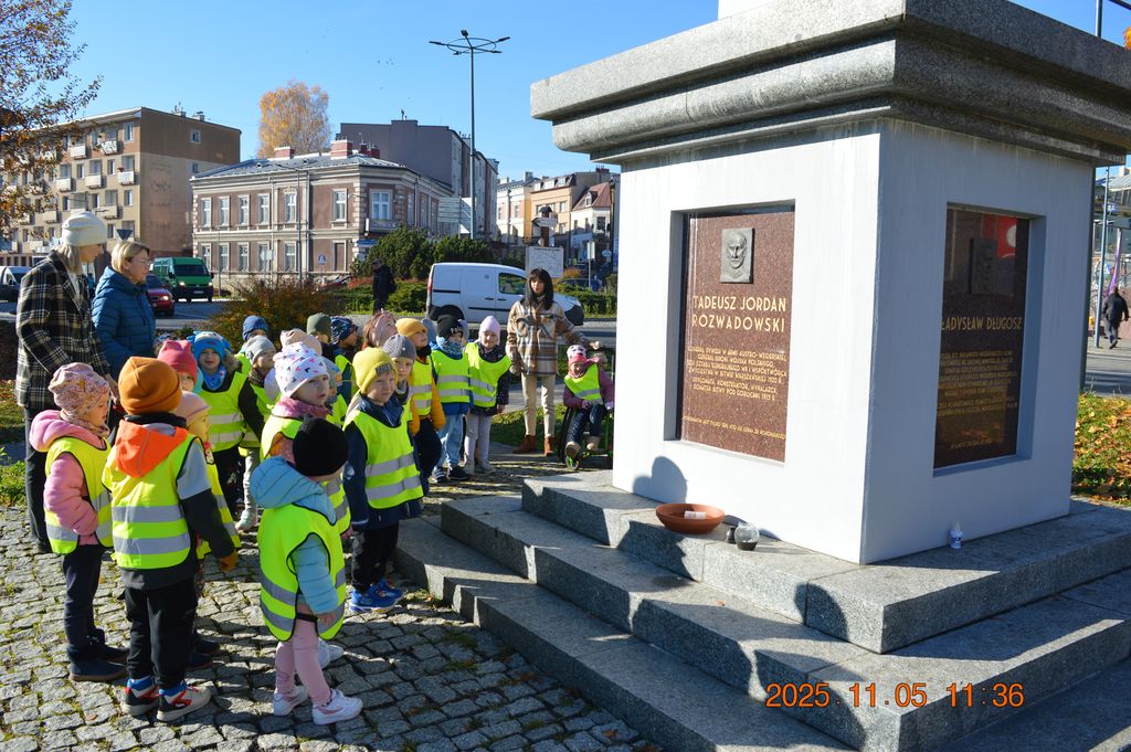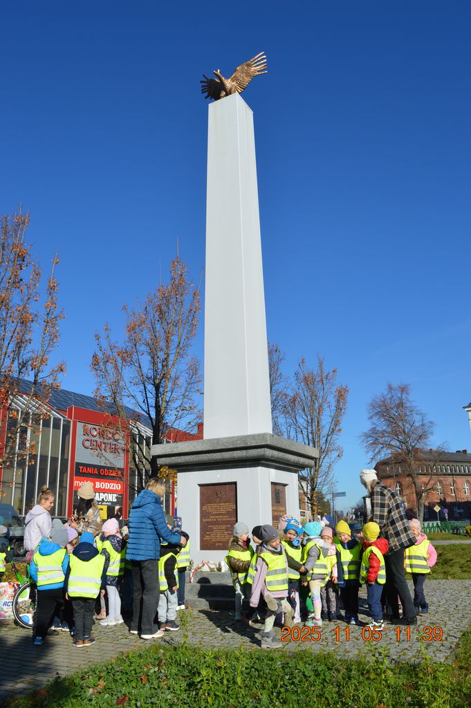 Podczas spaceru dzieci poznawały historię miejsc, które przypominają o przeszłości, ucząc się, że wolność i pokój, w jakich dziś żyjemy, są darem, o który wielu musiało walczyć.