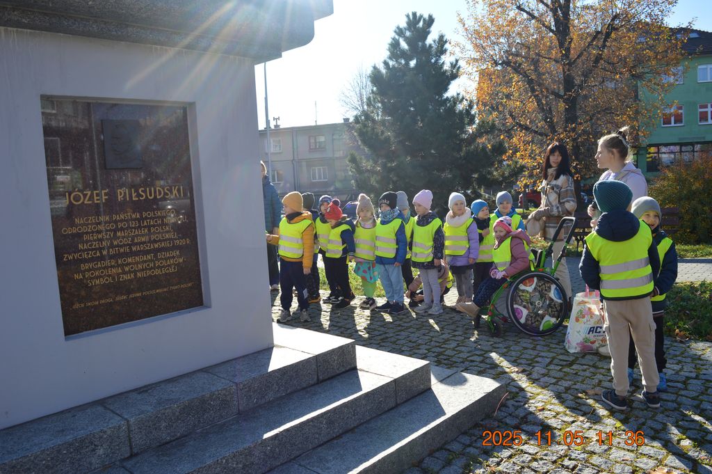 Przedszkolaki odwiedziły Pomnik Niepodległości oraz Pomnik Bohaterów Ziemi Gorlickiej. Z powagą i wzruszeniem zapaliły znicze, oddając w ten symboliczny sposób hołd poległym. Ten cichy gest – płomień małej świeczki – stał się znakiem wdzięczności, szacunku i pamięci.