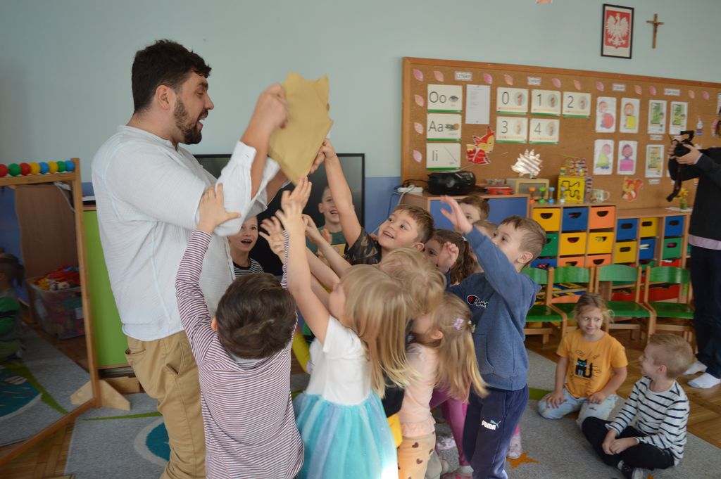 W czwartek, 13 listopada o godzinie 9.00, w Miejskim Przedszkolu nr 1 w Gorlicach odbyło się wyjątkowe spotkanie z Mateuszem Świstakiem — opowiadaczem, pisarzem, edukatorem i podcasterem, który od ponad jedenastu lat udowadnia, że moc opowieści potrafi odmienić sposób, w jaki uczymy się i poznajemy świat.