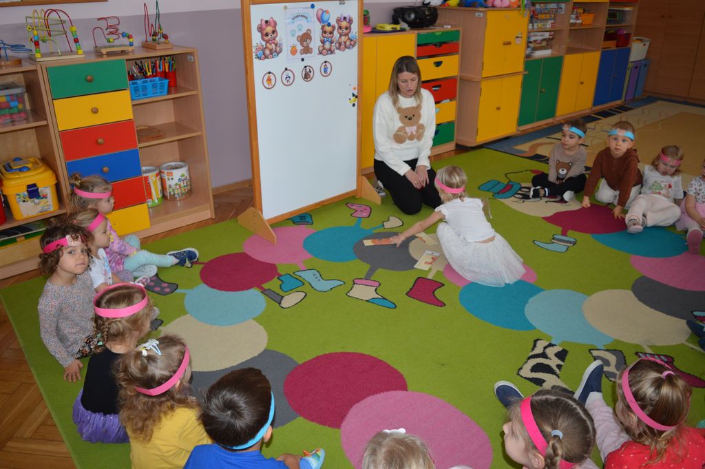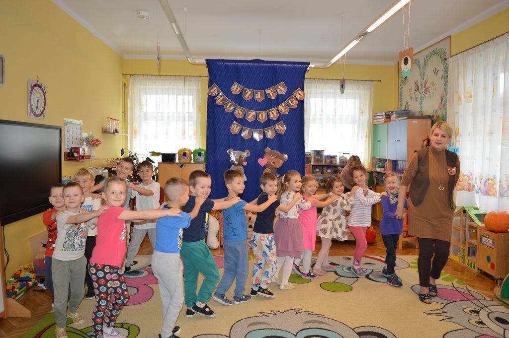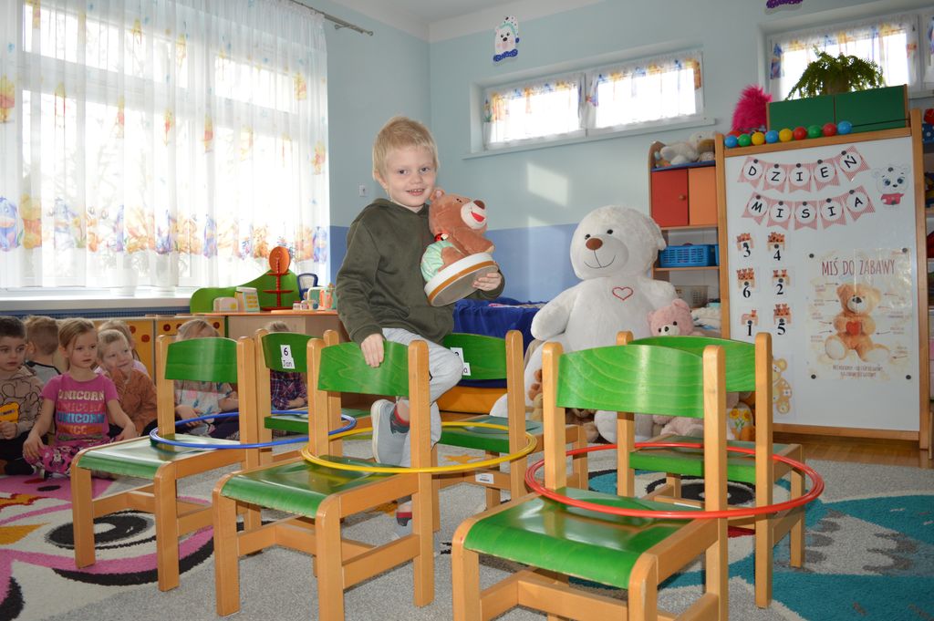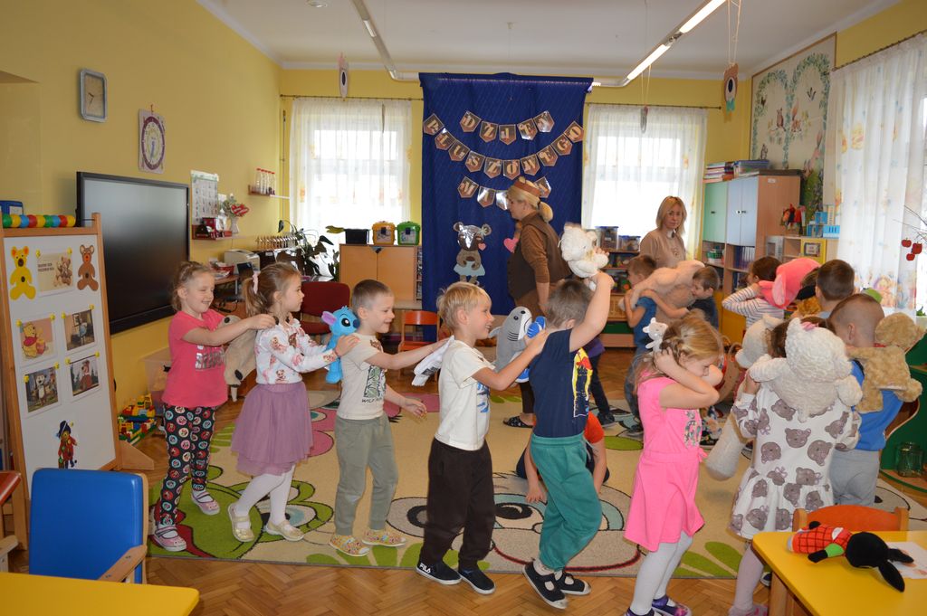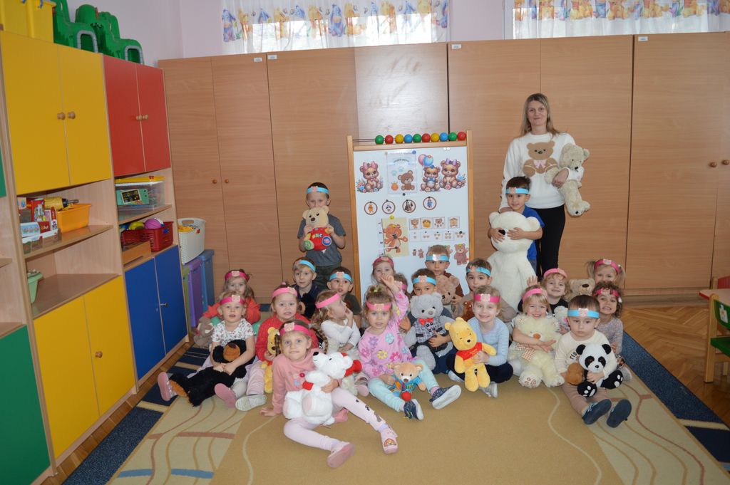 Podczas zajęć przedszkolaki miały okazję poznać historię powstania pluszowego misia, a także wziąć udział w różnorodnych aktywnościach tematycznych. Na dzieci czekały zabawy przy muzyce, radosne pląsy, misiowe wróżby oraz liczne zadania ruchowe i integracyjne z udziałem ich ukochanych pluszaków.