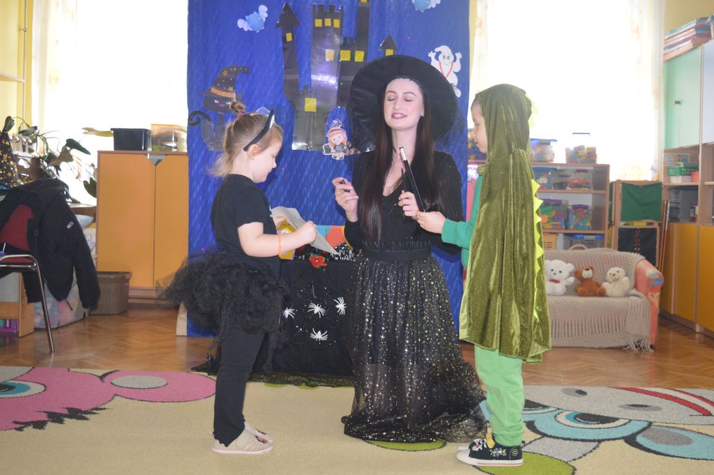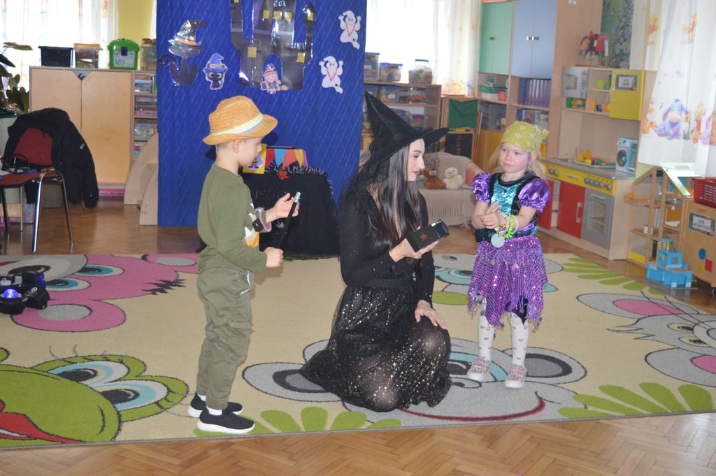Najważniejszym punktem programu była wizyta Czarodziejki, która angażowała przedszkolaki do swoich wróżb i czarów. Dzieci z ogromnym zaciekawieniem uczestniczyły w magicznych pokazach i aktywnie brały udział w przygotowanych zadaniach.