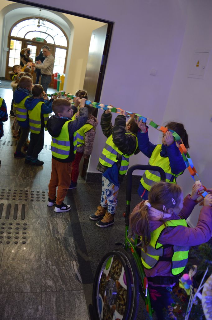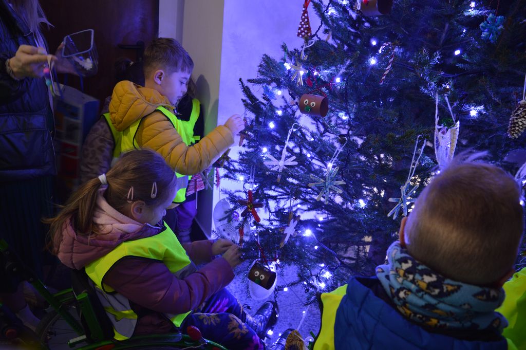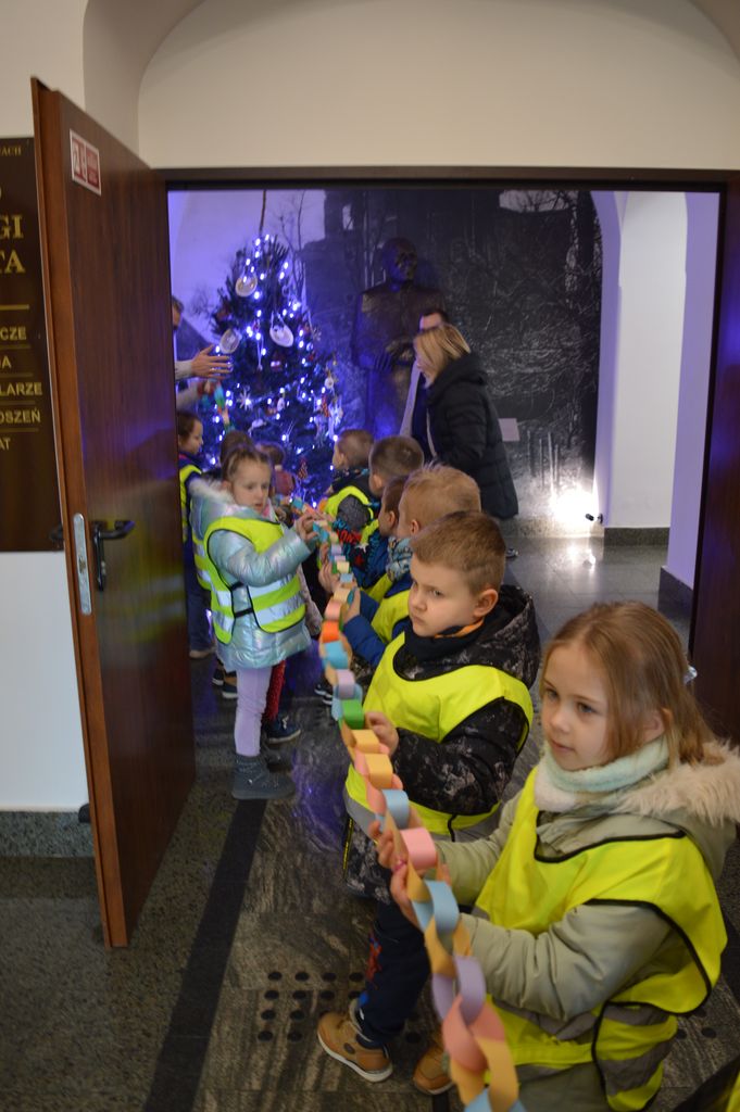 „Świąteczna magia w Urzędzie Miejskim – przedszkolaki ubierają choinkę”